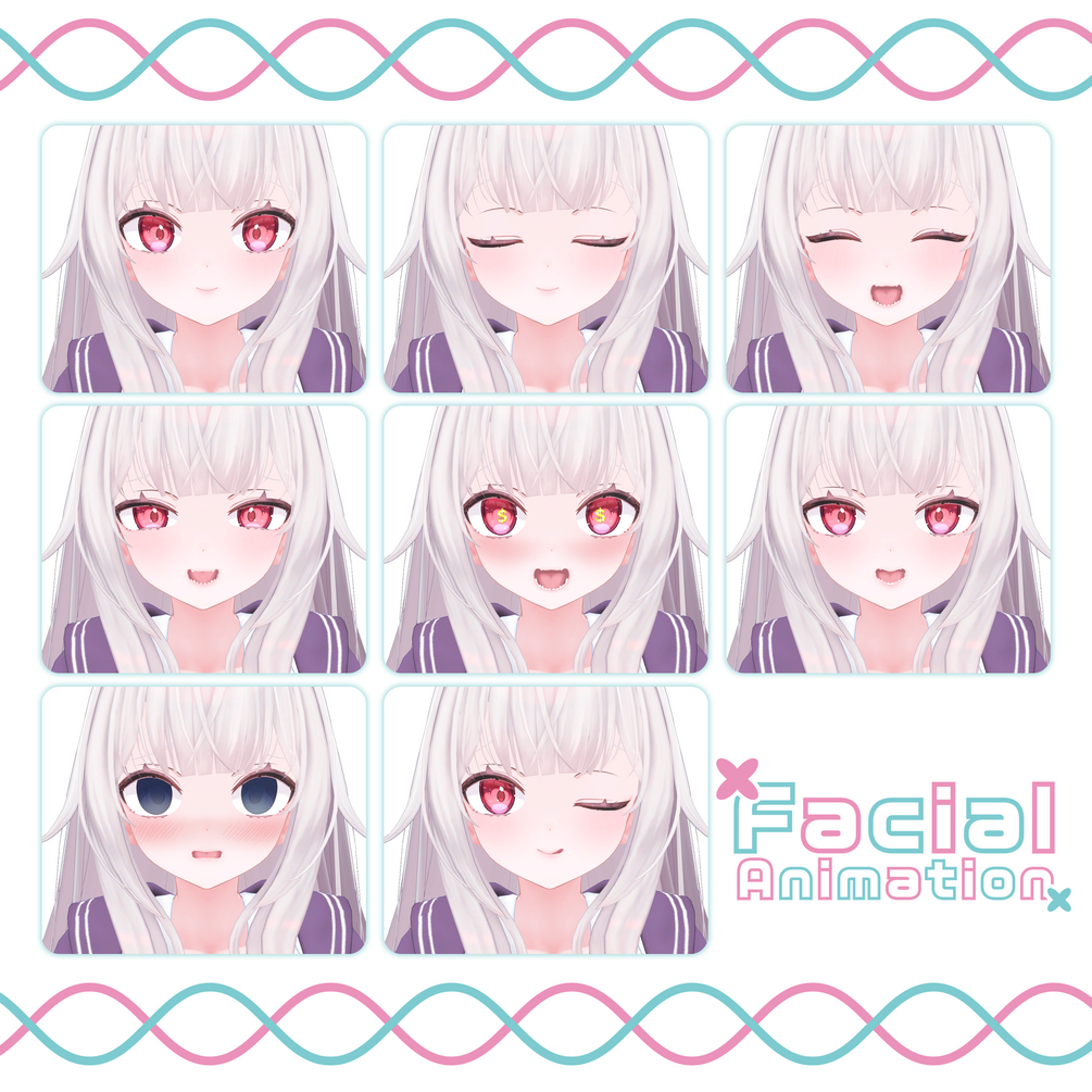 ・Equipped with shape keys for adjusting the shape of the face.